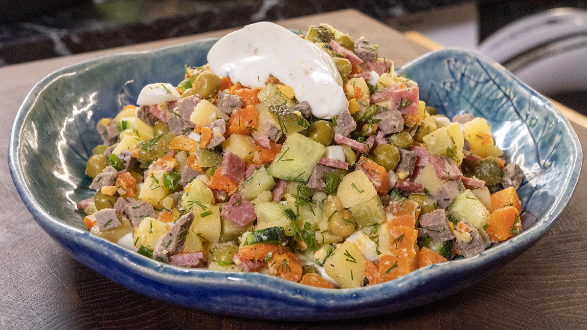 Салат Оливье – это не просто гарнир, это настоящая классика новогоднего стола. И в этот раз предлагается уникальная версия этого блюда, которая подарит вашему празднику новый вкус. Вместо привычной колбасы используется нежная отварная говядина с добавлением ароматного сервелата. А привычный майонез становится основой для удивительного соуса, в составе которого сливки и пикантная горчица.