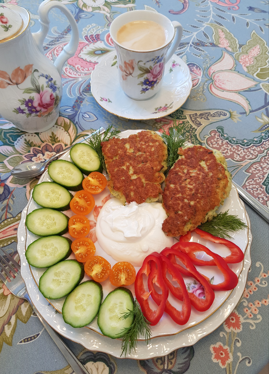 Подавайте оладьи с нежной сметаной, свежими овощами и ароматной зеленью. Это идеальное блюдо, которое порадует самых взыскательных гурманов. Приятного аппетита!