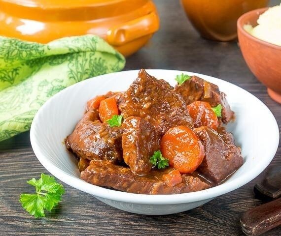 Сочное блюдо: Говяжья грудинка в ароматном томатном соусе