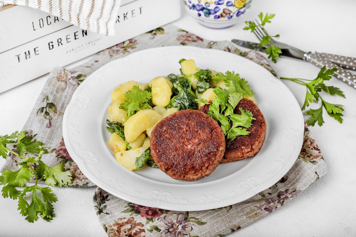 Шаг 4: Разогреть сковороду с 1 столовой ложкой растительного масла и обжарить котлеты по 3-4 минуты с каждой стороны. Подавать котлеты вместе с картофелем по-далматински сразу же. Приятного аппетита!
