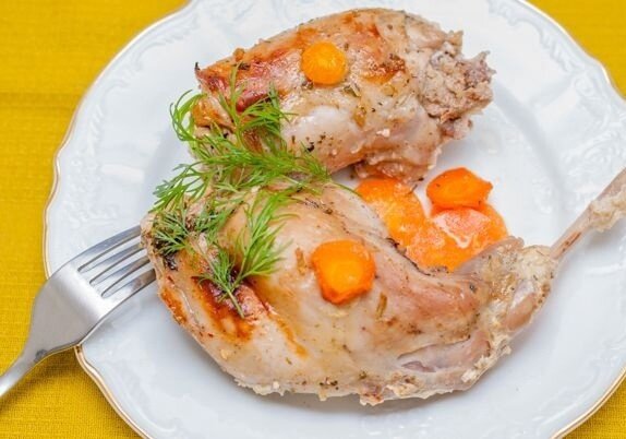 Мясо кролика, тушеное в сливках, - это отличный способ не только избавиться от характерного аромата, но и сделать его мягким и невероятно вкусным. Яркая морковь, нарезанная кружками, добавляет блюду не только цвет, но и может заменить гарнир.