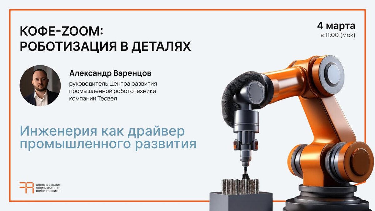 4 марта в 11:00 (мск) состоится специальный выпуск Кофе-zoom, посвященный Дню инженерии. В этом выпуске будут обсуждаться ключевые аспекты, без которых невозможно представить роботизацию.
