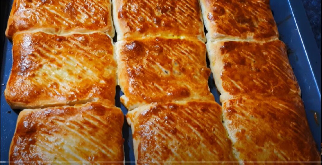 Пирожки помещаются на противень и оставляются на 10 минут для отдыха, а затем отправляются в разогретую до 180 градусов духовку на 20 минут. Готовая выпечка восхитительным ароматом заполнит ваш дом, а ее вкус обязательно не оставит равнодушными всех домашних!