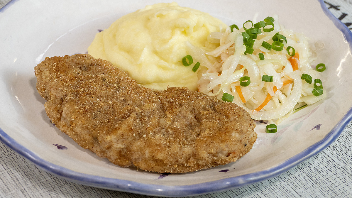 В нашем меню — шницель, подающийся с квашеной капустой и картофельным пюре. Уникальное сочетание нежного мяса и аппетитного гарнира порадует даже самых взыскательных гурманов.