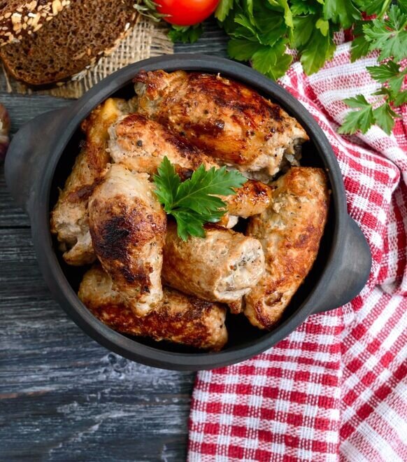 Мясные рулетики с грибами и сыром готовы! Их можно подавать с картофельным пюре или гречневой кашей, а также оформить зеленью. Приятного аппетита!