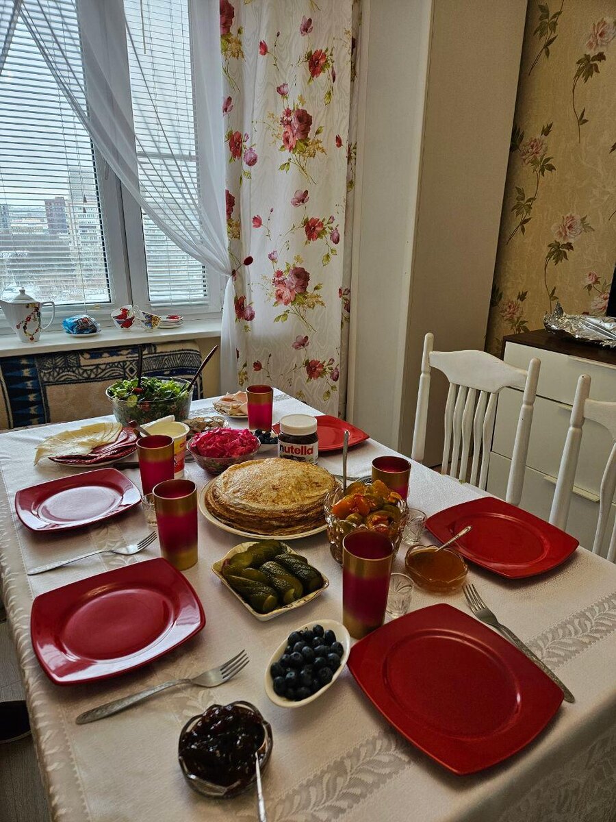 В прошедшую субботу накануне завершения Масленицы празднование достигло новых высот. На столе у тёщи развернулся настоящий кулинарный праздник: не только традиционные блины и домашнее варенье из смородины, но и обилие закусок — от ароматного сала до хрустящих маринованных огурцов. Это был наглядный пример русского гостеприимства в полном его великолепии.