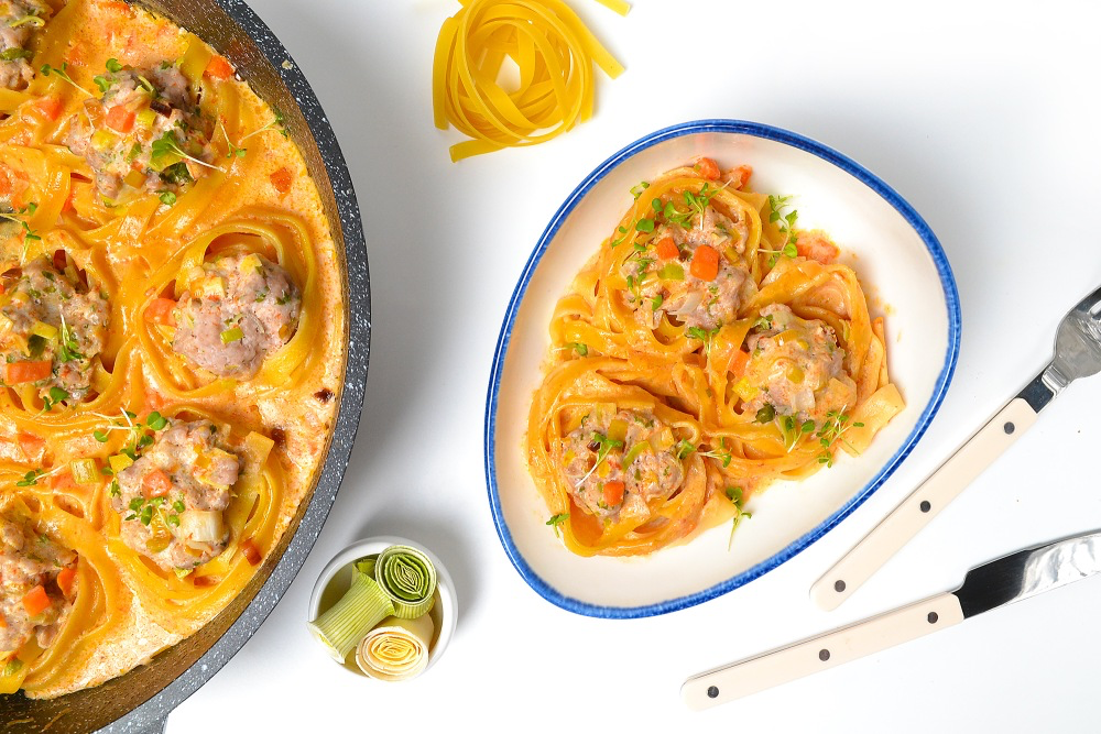 Сочетание сливок и томатной пасты придает блюду насыщенный вкус, а зелень добавляет свежести. Гнезда можно легко запечь в соусе на сковороде, что делает их особенно аппетитными и сытными.