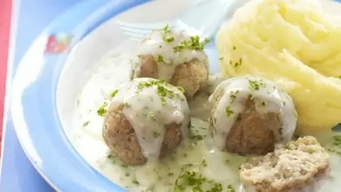 На раскаленной сковороде растопите масло, добавьте муку для загущения и затем постепенно влейте сливки, помешивая. Как только соус закипит, добавьте тефтели и тушите их на медленном огне около 15 минут, чтобы они пропитались ароматом.