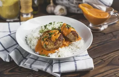 Теперь можно подавать аппетитные котлеты из индейки вместе с рисом, полив приготовленным соусом. Это блюдо станет отличным выбором для семейного ужина, который обязательно понравится всем!