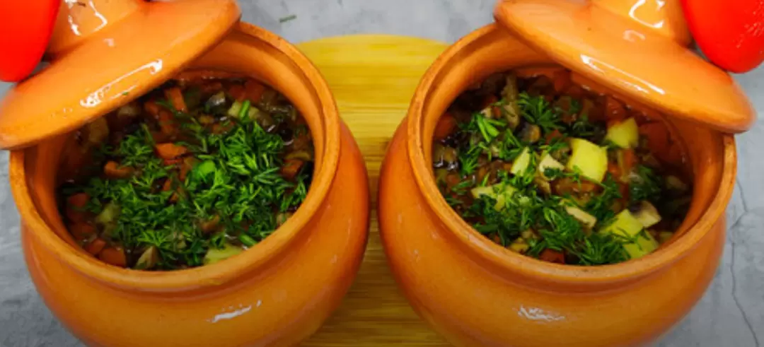 В глубокую сковороду или казан добавьте обжаренные овощи: сначала лук и морковь, затем шампиньоны, а после — картофель. Все ингредиенты нужно обжаривать около 5 минут, после чего добавьте курицу и 200 мл воды. Накройте крышкой и готовьте на слабом огне 25–30 минут, позволяя всем ароматам смешаться.