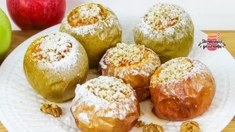 5. По завершении запекания готовые яблоки можно украсить сверху оставшимися орехами, сахарной пудрой или даже полить медом для усиления сладости. Подавайте к столу и наслаждайтесь яркими вкусами!