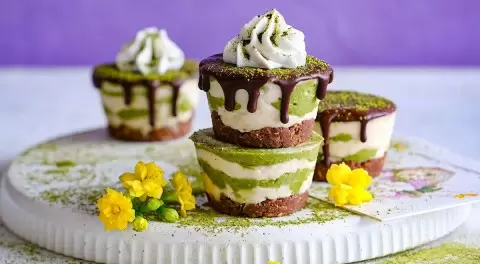 Чизкейк 'Зебра' — это не просто сладость, а настоящее произведение искусства на столе. С его привлекательной мраморной текстурой и уникальным вкусом, этот десерт способен украсить любой праздничный стол и стать звездой вечера. В этом рецепте используется порошок матча, который придаёт чизкейку мягкий зелёный оттенок и изысканный травяной привкус. Готовить его — это не только приятно, но и интересно, благодаря возможности создания эффекта 'зебры'.