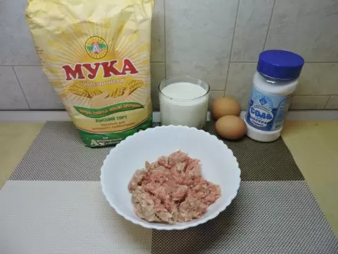 2. Добавьте сырой фарш. Чтобы сделать оладьи более ароматными и сочными, можно также включить мелко нарезанный лук.