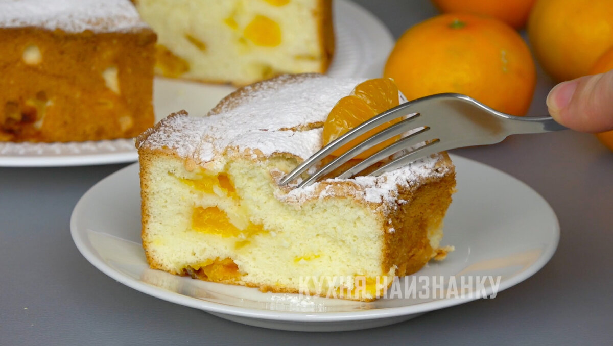 Эта шарлотка станет настоящей звездой вашего стола. Вместо привычных яблок используются мандарины, что придаёт блюду особый вкус.