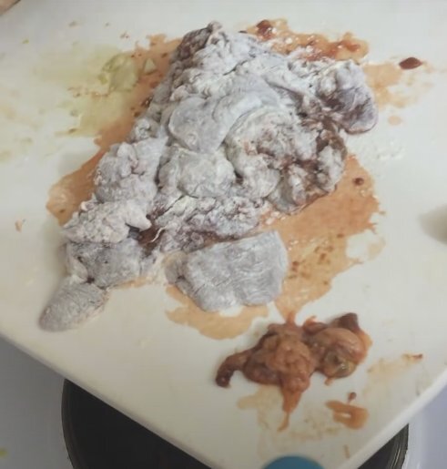 Далее на сковороде разогревается растительное масло. Кусочки печени обваливаются в муке, после чего начинают обжариваться. Сначала на сковороду отправляется лук, который нужно жарить до золотистого цвета, а затем добавляется печенка. Все тщательно перемешивается.