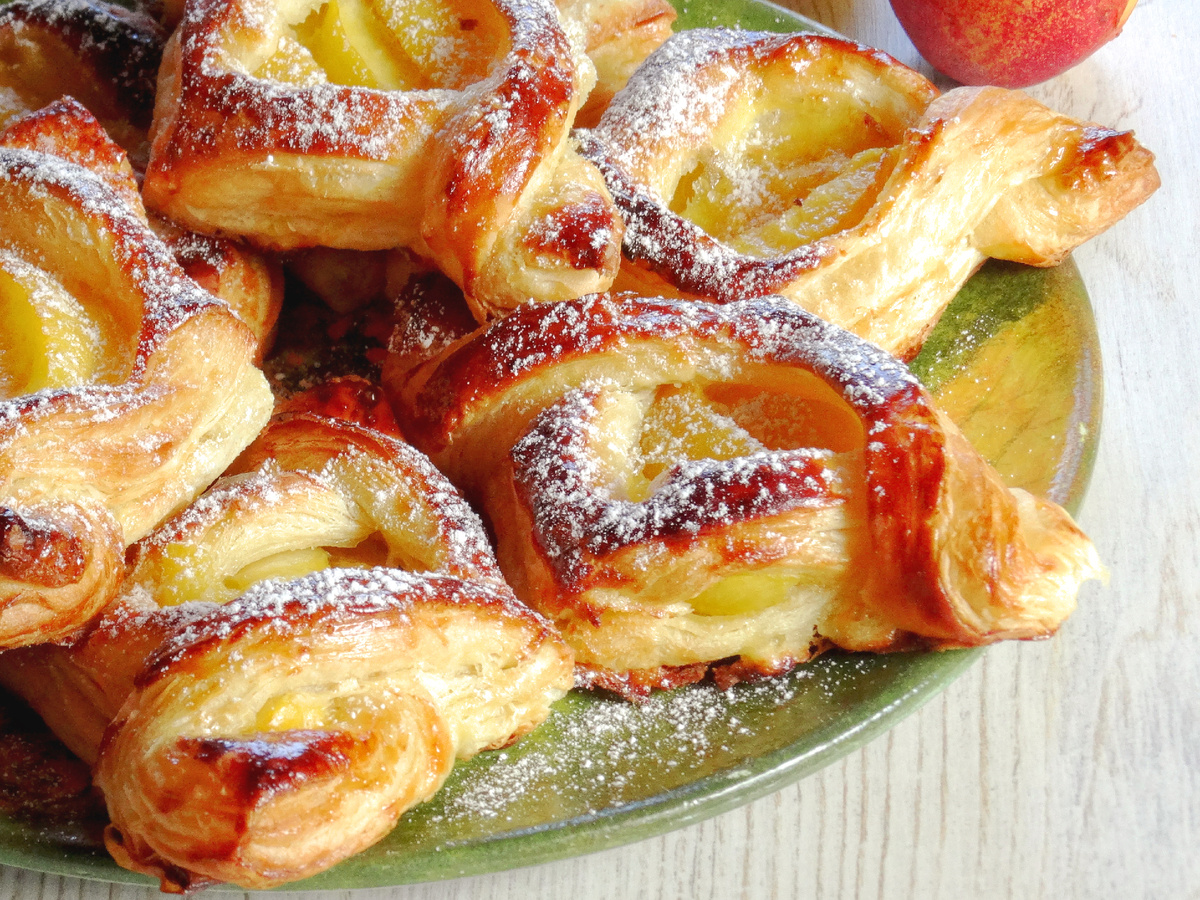 Нектарины придают слойкам удивительный вкус и аромат. Их нежная текстура и сладкость хорошо сочетаются с хрустящей корочкой теста. Они легко доступны и хороши как в свежем, так и в запеченном виде.