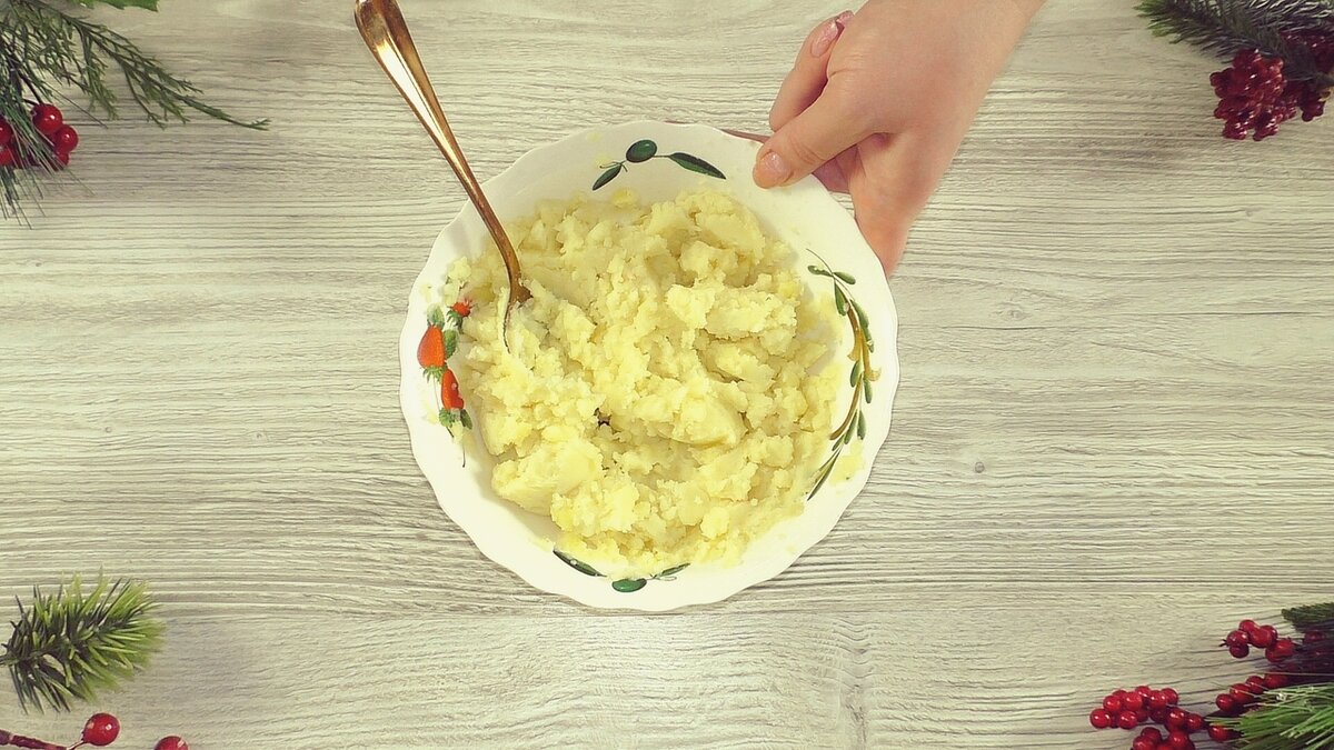 Начинка может быть любой, но в этом рецепте используется картофельная. Приготовление картофельного пюре — дело привычное, поэтому можно сразу приступать к тесту.