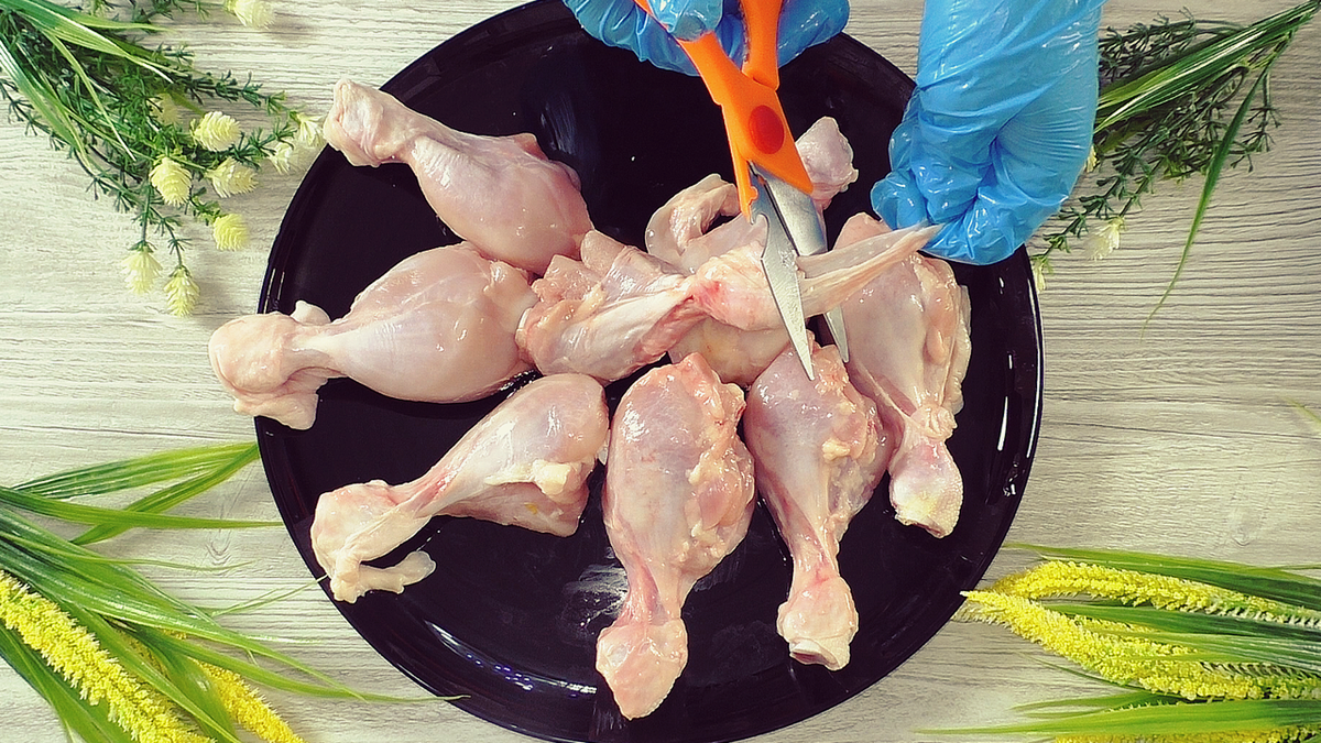 1. Куриные голени промываются и при необходимости очищаются от кожицы. Далее, слегка солим и перчим их.