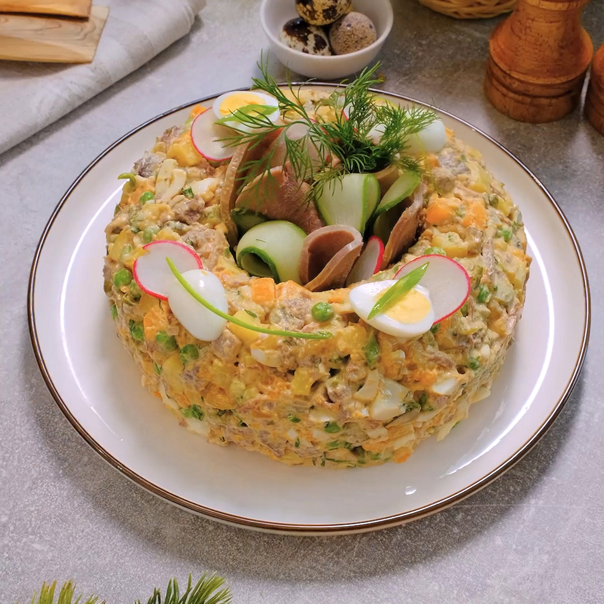 Как подать оливье