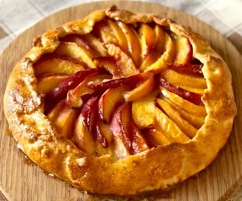Разложите фрукты на тесте, оставив свободные края. Заверните и защипните края, вылейте лимонно-медовую массу внутрь и выпекайте 40-45 минут. Подавайте слегка теплой, посыпав сахаром или добавив мороженое.
