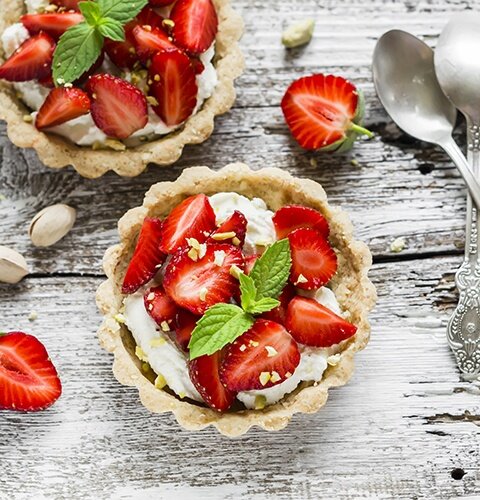 Летний десерт: тарталетки с нежным творожным кремом и сочной клубникой