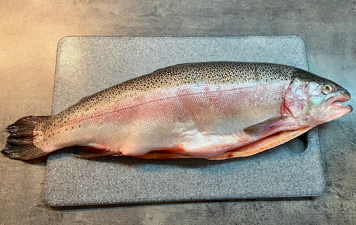 Итак, начнем! Вам понадобится форель весом примерно 2 кг. Сначала отделите голову и хвост, а затем филе — это можно сделать, используя острый нож. Кости, голова и хвост отправьте в морозильник, так как из них получится отличный рыбный суп.