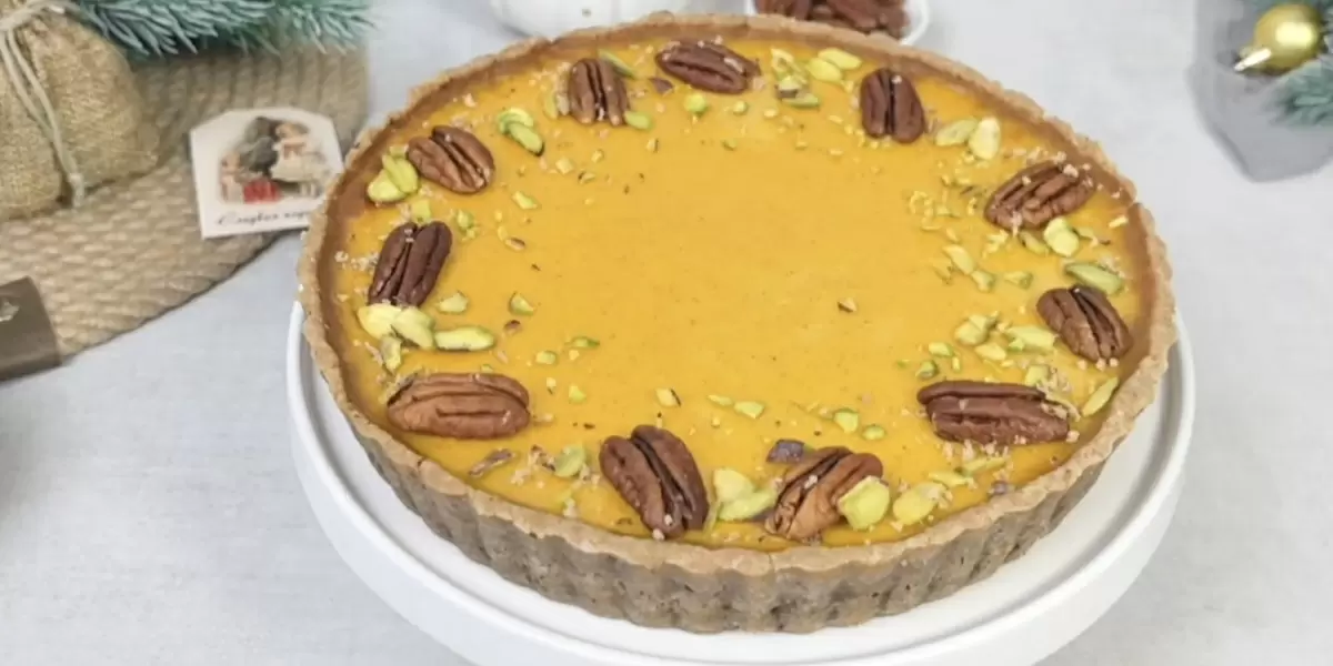 Грецкий орех в этом рецепте не только обогащает вкус, но и наполняет тарт тёплой карамельной ноткой, прекрасно подчеркивая тыквенную начинку.