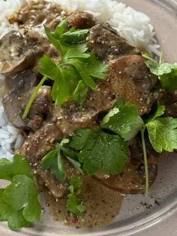 После указанного времени следует проверить готовность мяса. Если оно мягкое, можно добавить сливки и убрать лавровый лист. Подавать лучше всего с гарниром из пюре или риса, при желании украсив блюдо свежими травами. Приятного аппетита!