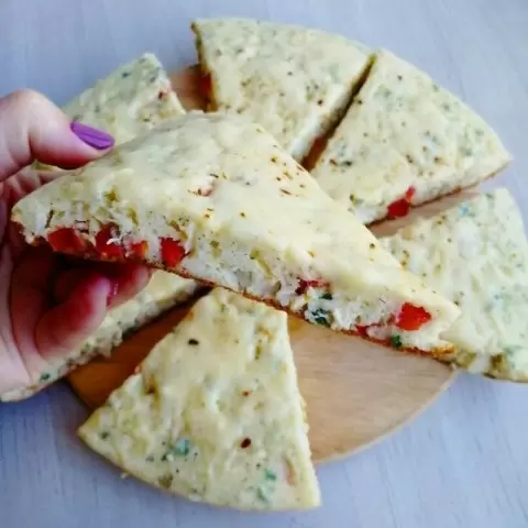 Подавайте сырную лепешку горячей, украсив зеленью. Она станет превосходным дополнением к любому обеду или ужину, а также хороша в качестве закуски на праздник.
