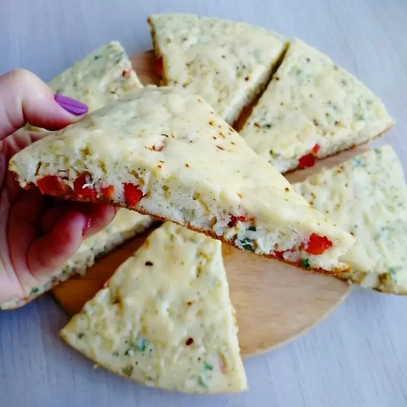 Разогрейте сковороду и выложите тесто. Жарьте на среднем огне под крышкой в течение 7-9 минут. После этого посыпьте оставшимся сыром и доведите до готовности, пока сыр не расплавится и не образует аппетитную корочку сверху.