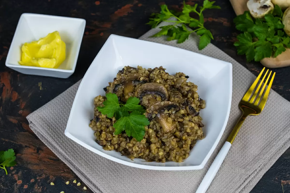 Пошаговый рецепт зелёной гречки с грибами