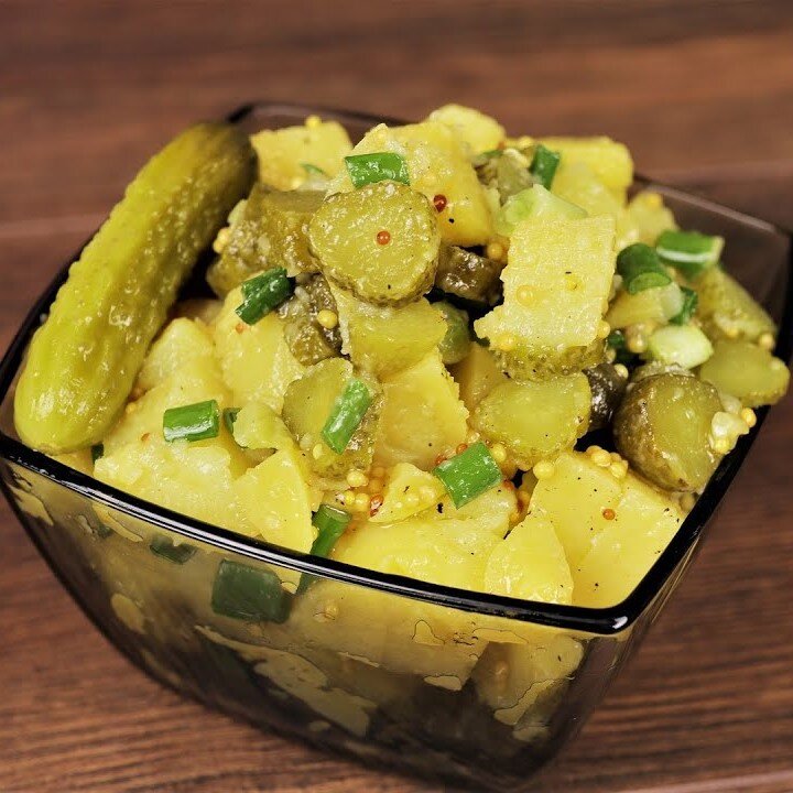 Для начала картофель тщательно моют и варят в кожуре до мягкости. После подготовки дайте картофелю остыть, затем очистите и нарежьте его на большие кубики. Корнишоны нарезаются толстыми кружочками, а перья зеленого лука моются, обсушиваются и мелко рубятся. Все эти ингредиенты объединяются в глубокой миске, чтобы создать основу для салата.
