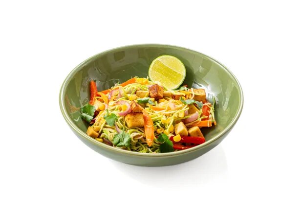 Этот веганский рецепт — настоящий гастрономический праздник, который идеально подойдет для тех, кто хочет не только вкусно поесть, но и добавить яркие акценты в свое меню. Лапша из кабачка наполнена свежими ингредиентами и украсит любой стол.