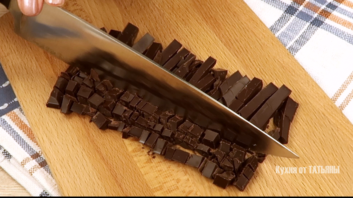 1. Понадобится нарезать шоколад на небольшие кусочки. Это добавит вкус и текстуру печенью.